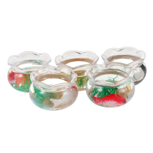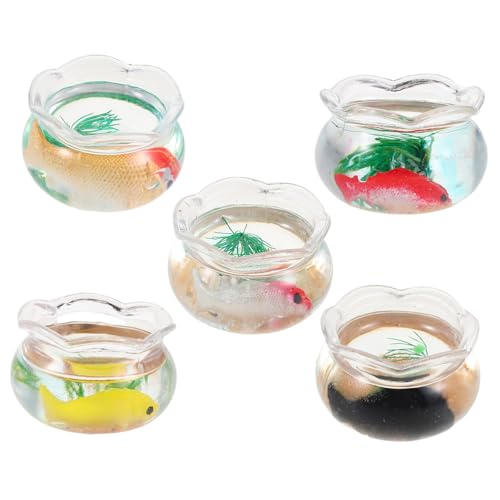BESPORTBLE 5pcs Miniature Goldfish Bowls Small Round Fish Aquarium with Simulated Water Plants Mini Dollhouse Koi Tank Decoration for Desktop Micro Landscape and Creative Play