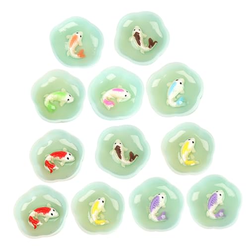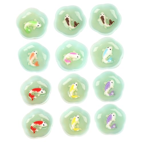 NOLITOY 12pcs Miniature Resin Fish Bowls Small Fish Tank Ornaments Mixed Colors Mini House Decor DIY Craft Accessories for Dollhouse Decoration