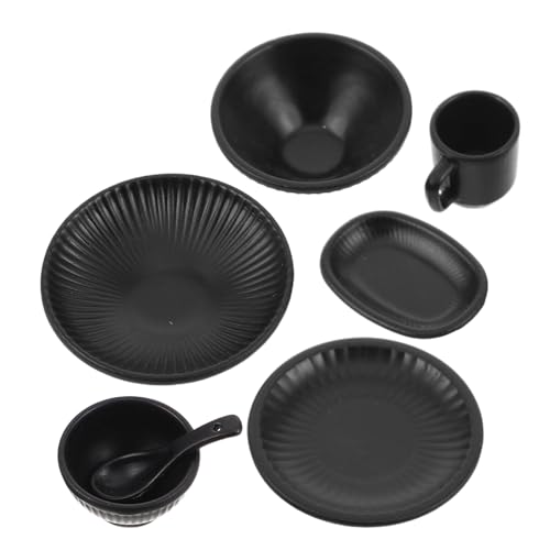 BESPORTBLE 7pcs Miniature Dollhouse Dinnerware Set Small Bowls Plates Mugs Pretend Play Accessories for DIY Micro Landscape Decorations Realistic Craftsmanship