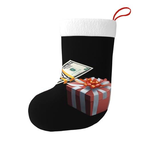 Whjhbd Banknotes Next to The Gift Box Printed Christmas Decorative Socks Stocking for Filling Small Gifts Such As Candy and Small Toys