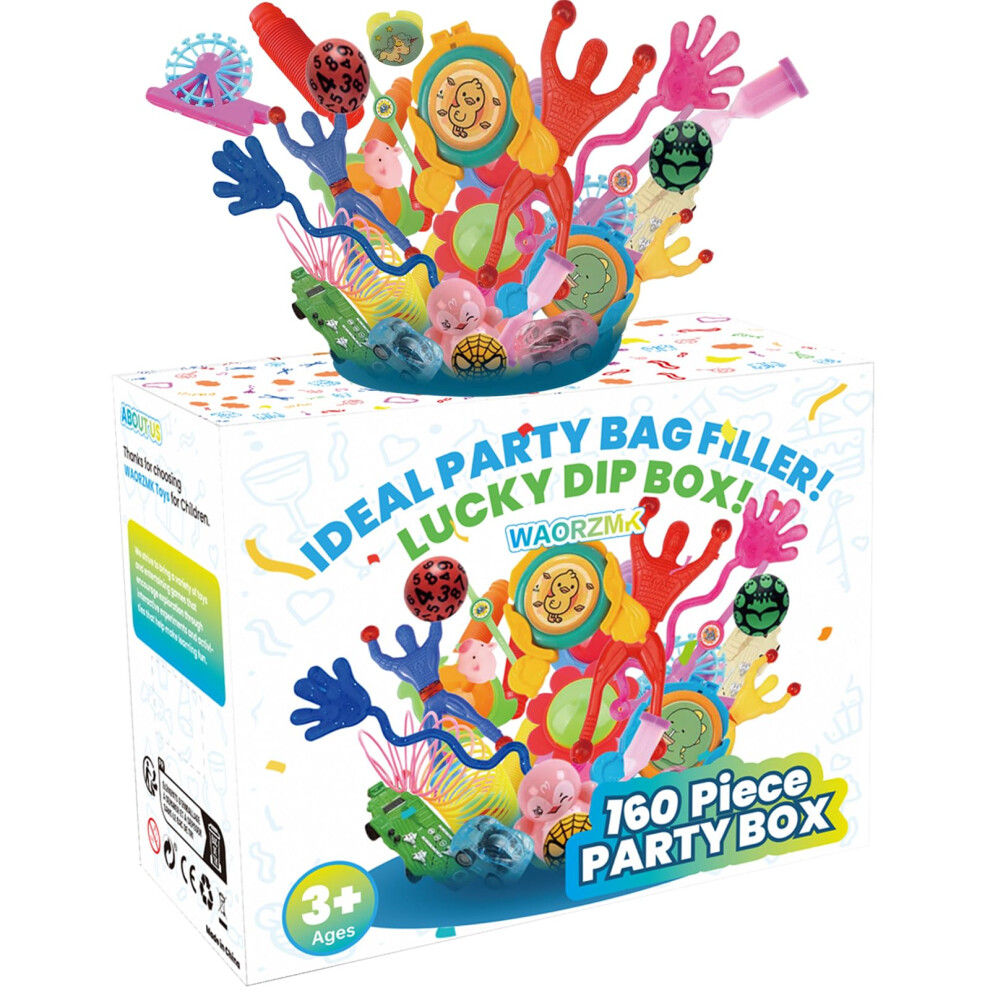 WAORZMK 160 Piece Party Favours Lucky Dip Box, Versatile Party Bag Fillers for Kids, Unisex Class Rewards Prizes Box Small Toys, Mystery Blind Boxes