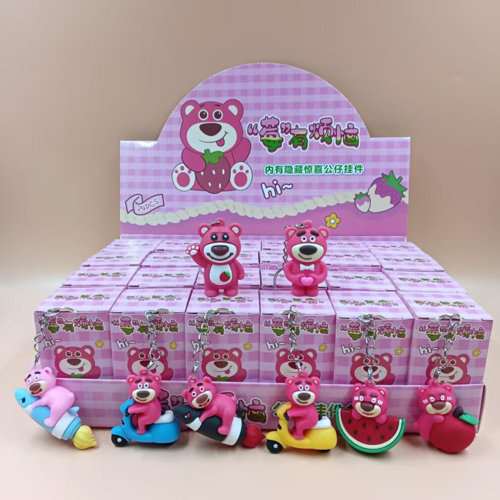 (Strawberry bear, 24 pieces in a box) Little Blind Box PVC Cute Pony. Poly Pendant Ornament Holiday Gift Small Prize Blind Box Toys
