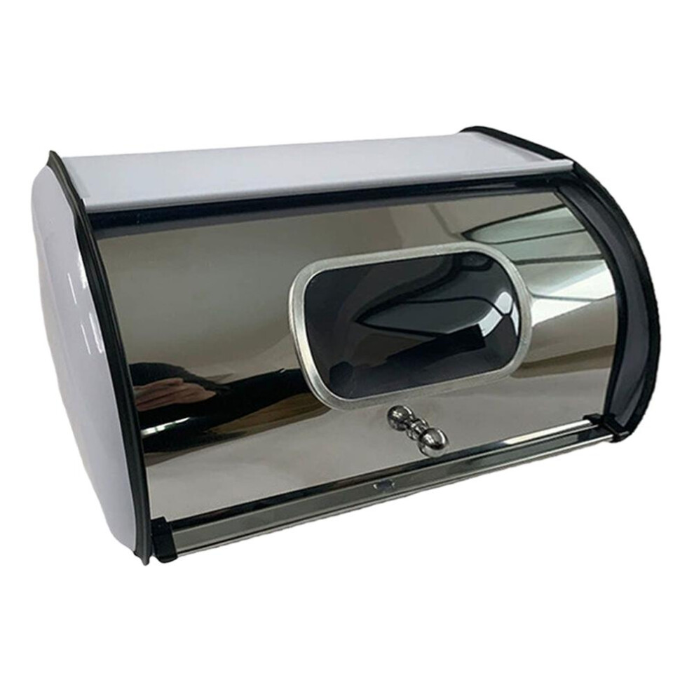 (As show, One size) Bread Box Small Flat Side Metal Storage Bin for Bread Cake Doughnut Biscuit Food Tableware Mirror Surface