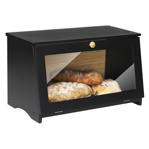 Leader Accessories Bamboo Bread Bin Small Bread Box Storage Space for Kitchen 15.4"x8.3"x9" Black