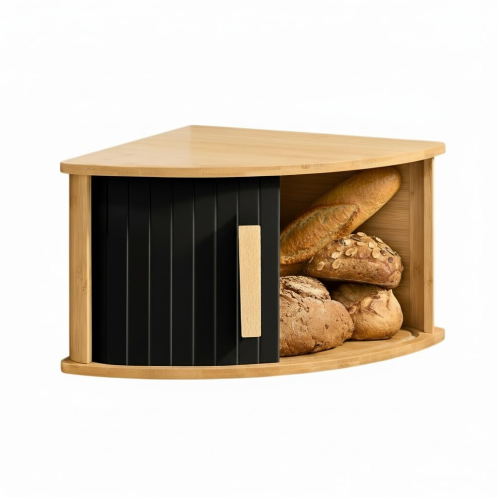 Bamboo Corner Bread Box with DualSide Sliding Door, SpaceSaving Bin for Small Kitchens
