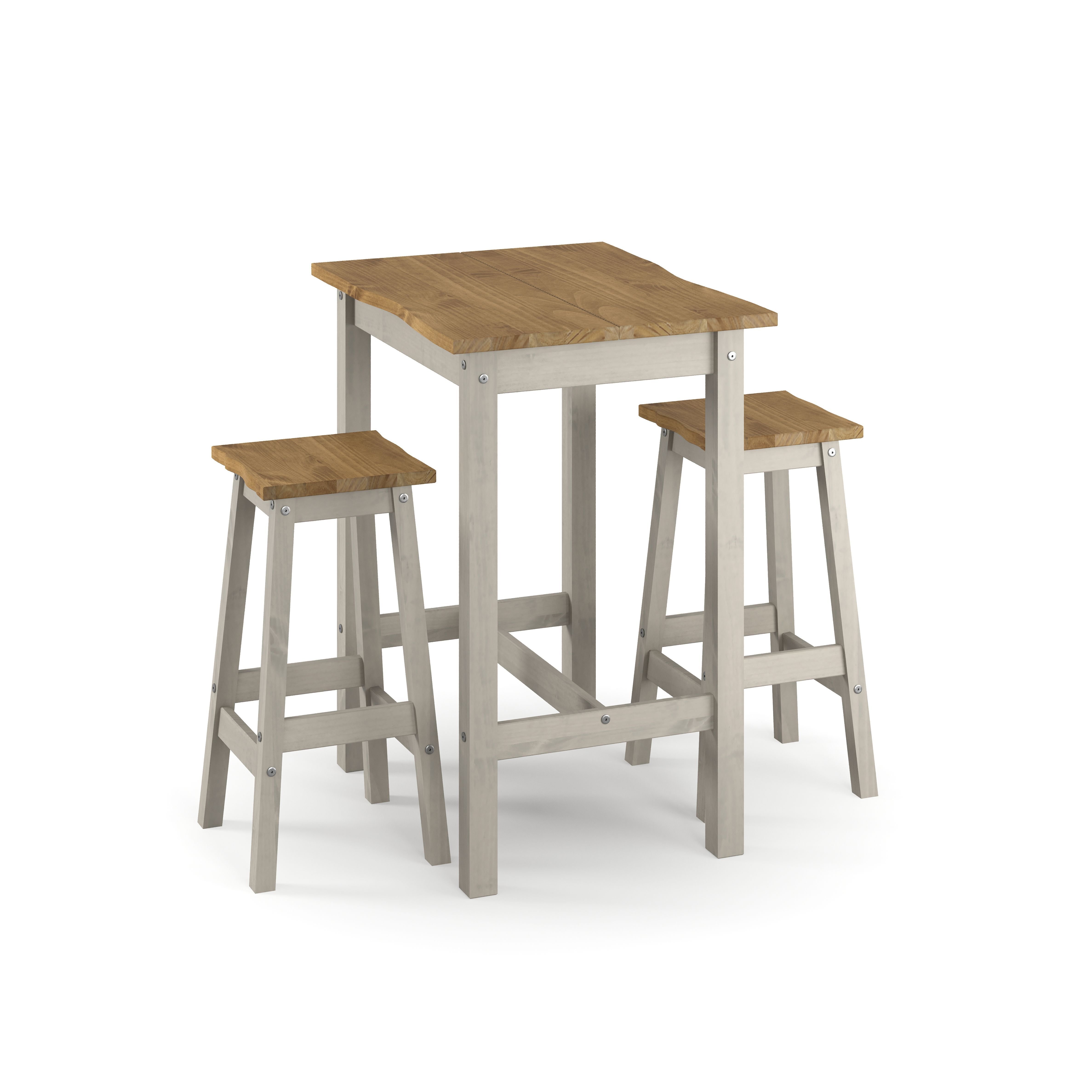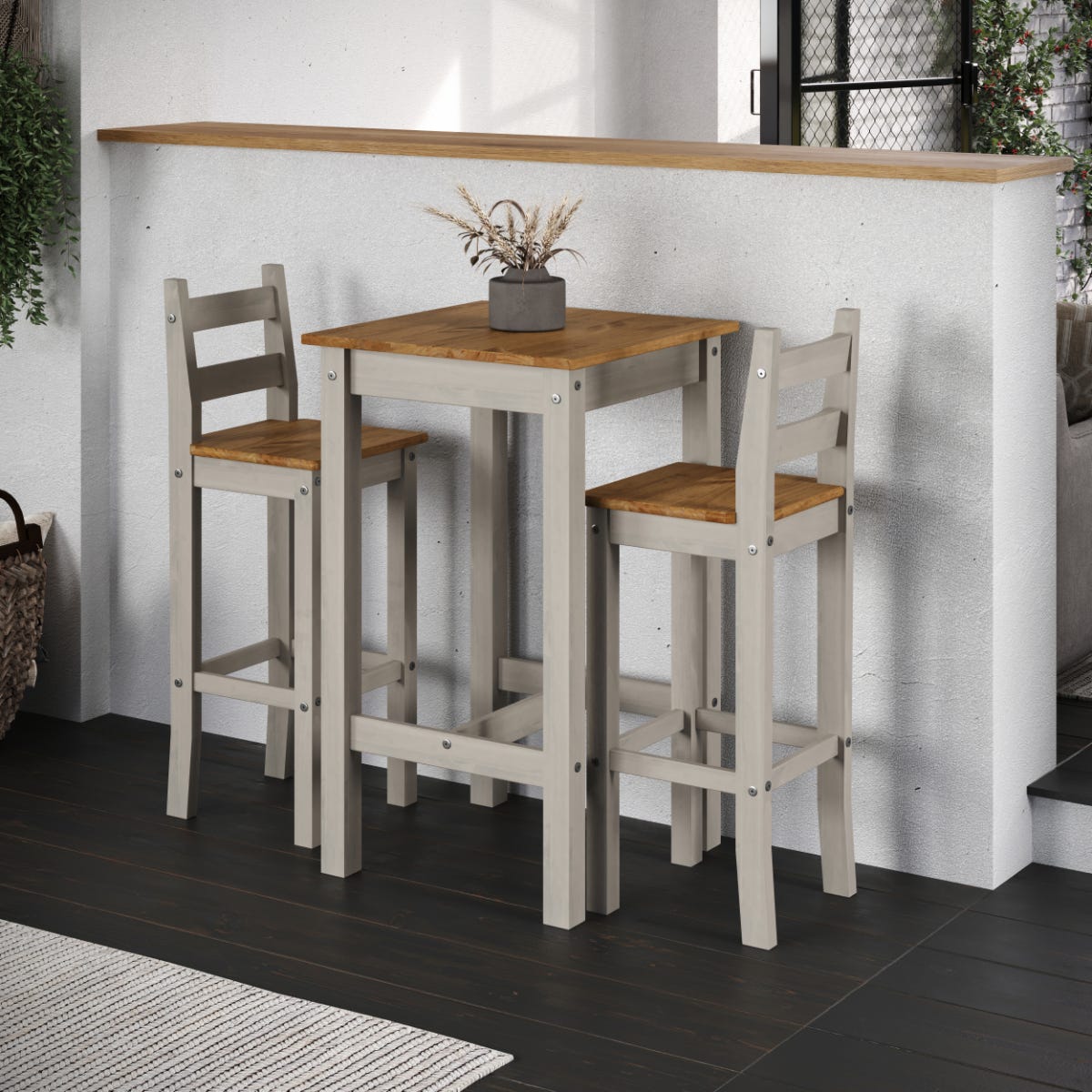 Corona Grey Small High Breakfast Bar Table and 2 Stools Set, Solid Antique Wax