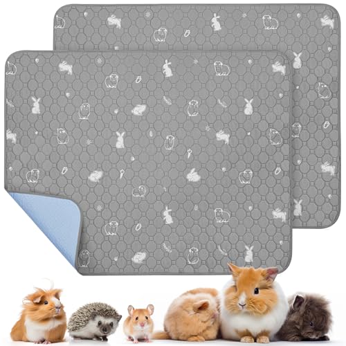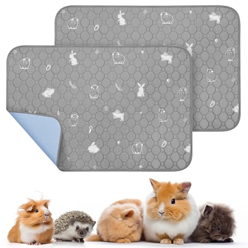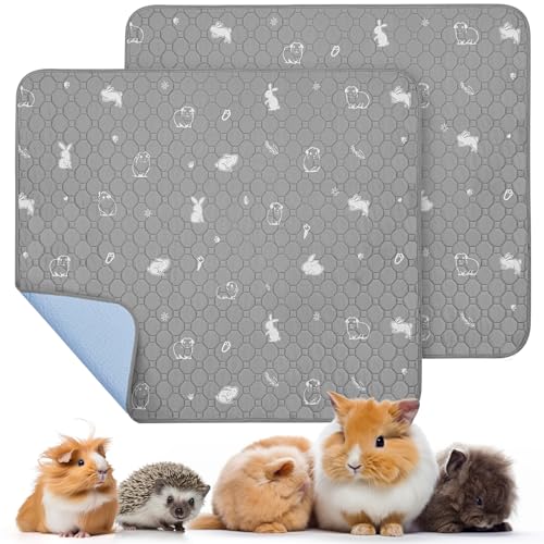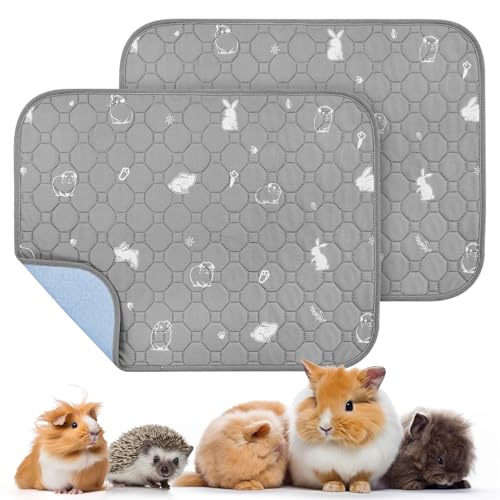 PICK FOR LIFE 2 Packs Guinea Pig Cage Liners - Washable Reusable Pee Pad, Waterproof Fast Absorbent Mat, Non-Slip Bedding for Small Animals - Chinchilla, Rabbit, Hamster, Puppy - 45x60 cm