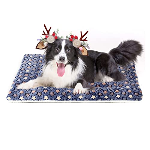 MORA PETS Dog Bed Mat Small Washable Dog Crate Mattress for 42 inch Cage Soft Flat Pet Cushion Bedding Puppy Pillow Blanket for Cats Puppy Dogs Reversible 106x71cm Blue
