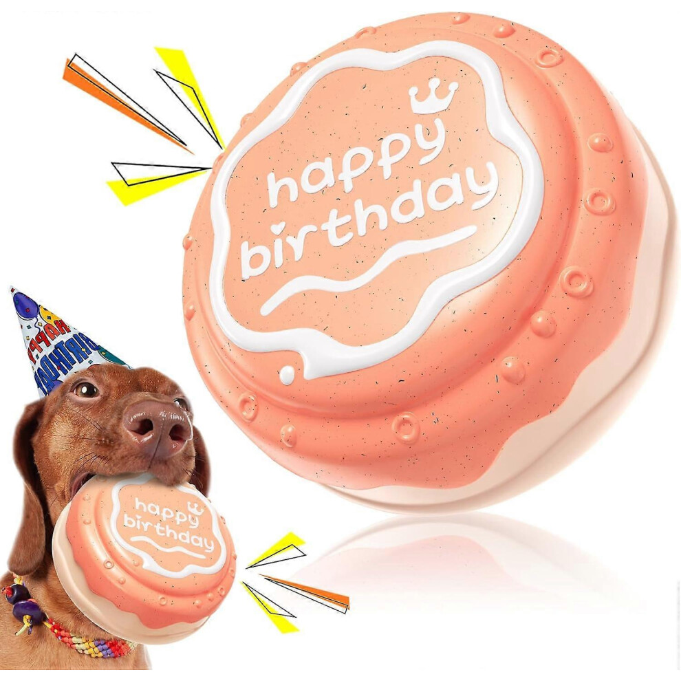 (As show, One size) Dog Birthday Toys Squeak Chew Toy Puppy Cake Gift for Small/Medium/Large Aggressive Chewers Breed Dogs Interactive Cage Training F