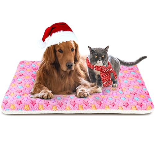 MORA PETS Dog Bed Mat Small Washable Dog Crate Mattress for 36 inch Cage Soft Flat Pet Cushion Bedding Puppy Pillow Blanket for Cats Puppy Dogs Reversible 89x59cm Pink