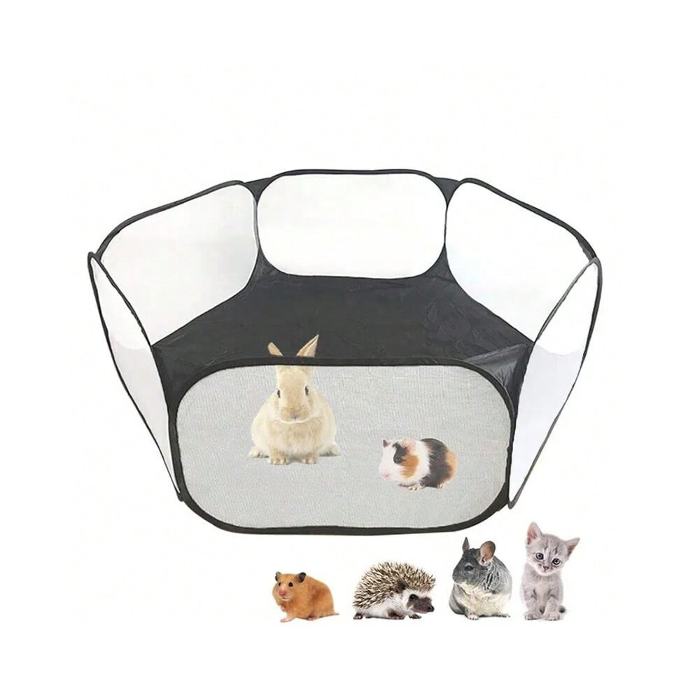 Portable Small Pet Animals Playpen Transparent Puppy Cat Rabbit Cage Tent for OutdoorBlack