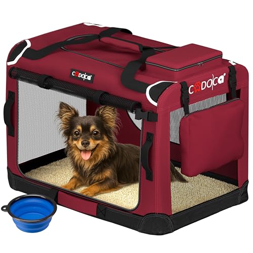 CADOCA® Small Dog Crate - Fabric | Dog Cage Foldable Portable Indoor & Car Travel Pet Carrier for Pets | Lightweight with Mesh Windows | Puppy, Kitten, Dog, Cat Carrier | 50x35x35cm Dark Red