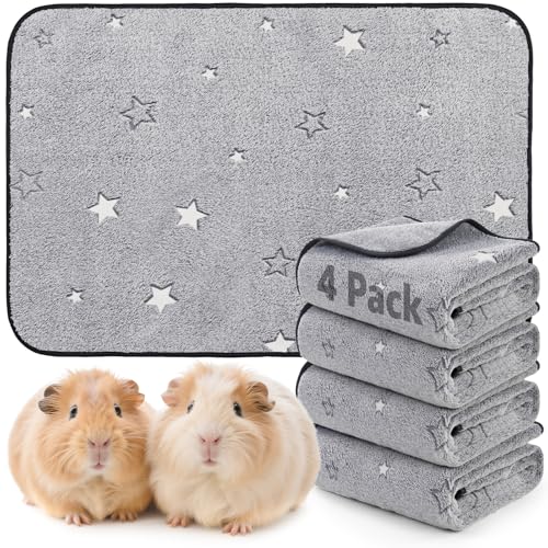PICK FOR LIFE 4 PCS Guinea Pig Fleece Cage Liner Leakproof Guinea Pig Mats Pee Pads Washable Pet Blankets Soft Absorbent for Small Animal Rabbit Ferret Hamster Chinchillas Hedgehog Puppy, 40 x 60 cm