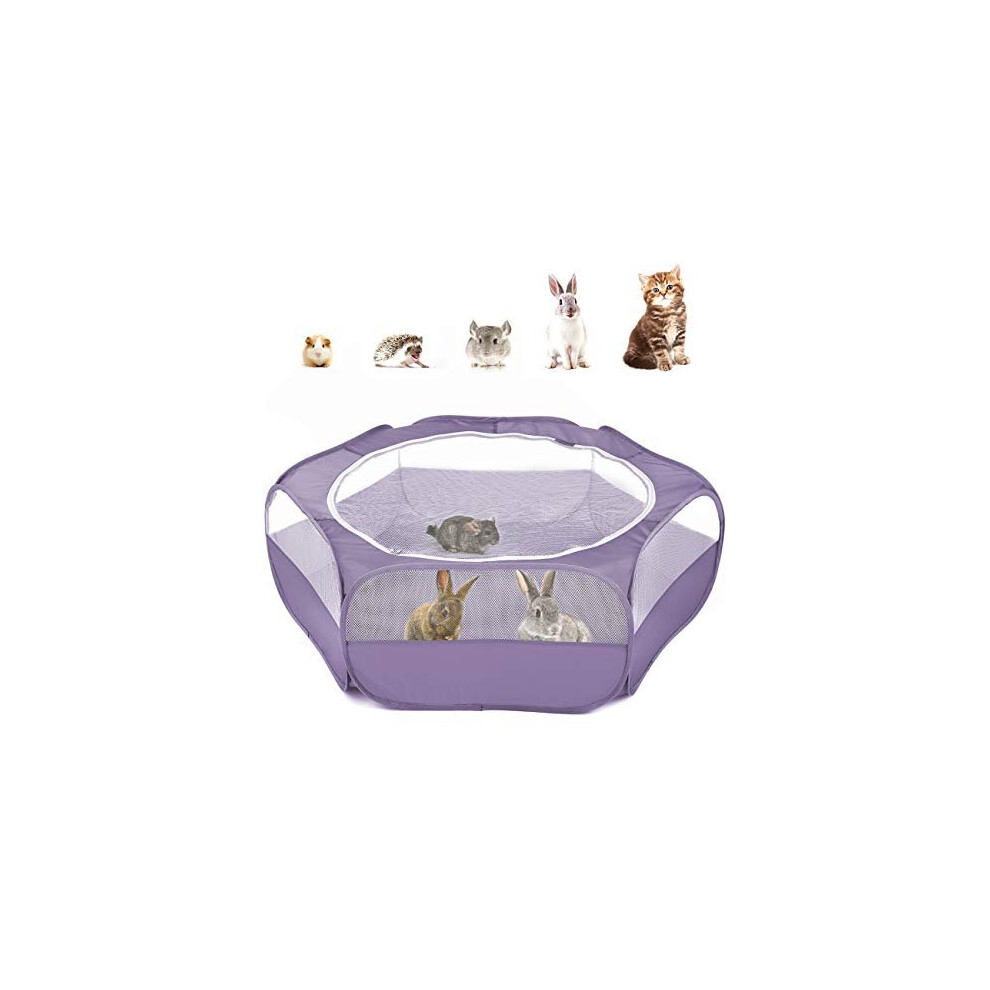 2-in-1 Small Animals Playpen with Pad, Waterproof Small Pet Cage Tent with Reusable Pad, Portable Outdoor Yard Fence with 3 Metal Rod for Chick/Kitten/Puppy/Guinea Pig/Rabbits/Chinchillas, Purple