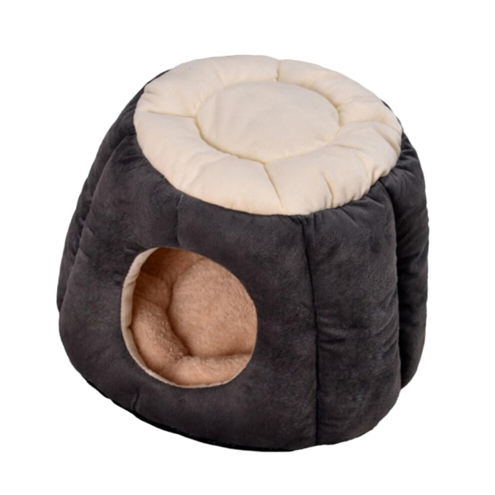 Dog Round House Puppy Tent Kennel Mat Small Pet Cave Gray and Black Cage