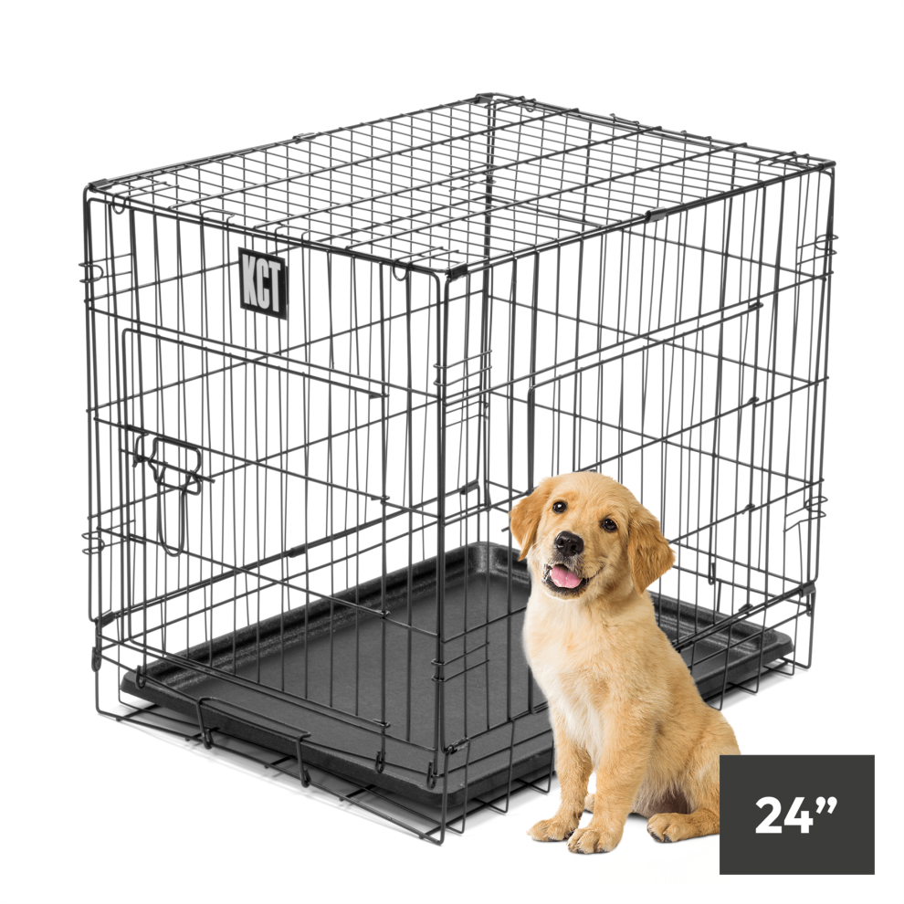 KCT 24â Small Metal Pet Crate with Floor Foldable Cage for Dog Puppy Cat Lockable Carrier Heavy Duty Outdoor Indoor Folding Travel Training Puppies