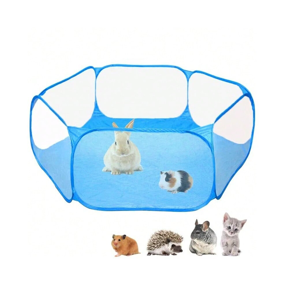 Portable Small Pet Animals Playpen Transparent Puppy Cat Rabbit Cage Tent for OutdoorBlue