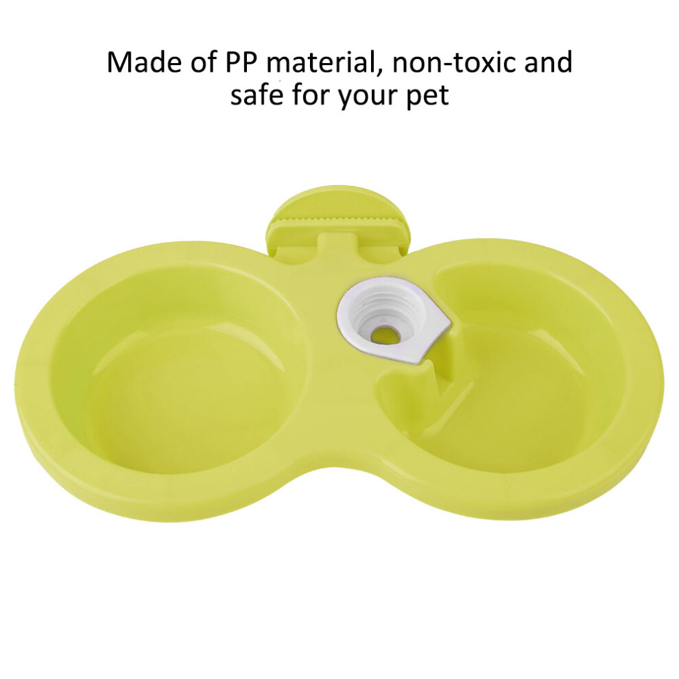 Pet Cat Dog Puppy Double Bowl Hanging Food Water Feeder For Crate Cage Small (Green)