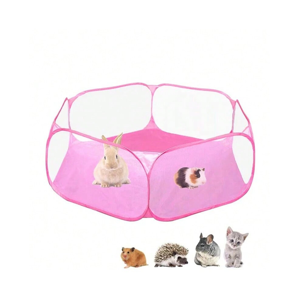 Portable Small Pet Animals Playpen Transparent Puppy Cat Rabbit Cage Tent for OutdoorPink