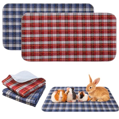 Scenereal Guinea Pig Cage Liner 2 Pcs, Reusable Washable Plaid Small Animal Bedding, Non-slip Fast Absorbent Waterproof Hamster Pads, Puppy Kitten Whelping Mats for Chinchillas Rabbits Bunny