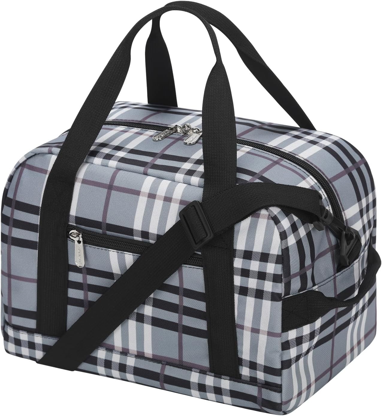 Small Gym Bag Carry On Bag - 12 inch Mini Duffle Bag Lightweight for Overnight Travel 30x20x20cm-Gray Grid