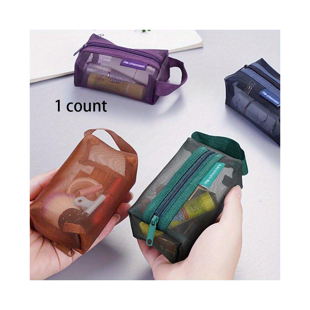 (Purple, 1 Count) Mesh Outer Layer Cable Storage Bag, 1 Count Portable Small Carry-on Bag for Data Cable & Charger, Makeup Bag, Travel Dorm Cable