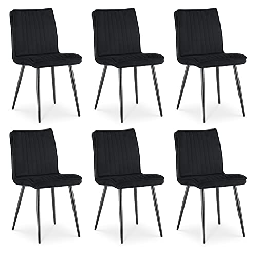 TUKAILAi Dining Chairs Set of 6 Black Velvet Upholstered Kitchen Corner Chairs with Comfy Backrest and Sturdy Metal Legs, Small Reception Chair for Home Living Room Lounge Waiting Area