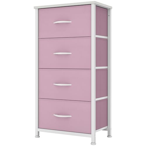 YITAHOME Small Chest of Drawers with 4 Drawers, Fabric Dressers with Easy Pull Handle,Sturdy Steel Frame,Storage Drawers for Bedroom,Pink