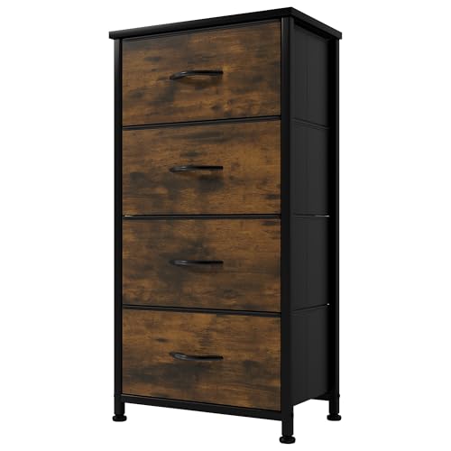 YITAHOME Small Chest of Drawers with 4 Drawers, Fabric Dressers with Easy Pull Handle,Sturdy Steel Frame,Storage Drawers for Bedroom,Rustic Brown