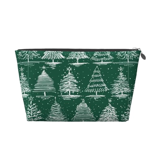 Minimalist and Stylish Portable Leather Makeup Bag,Christmas Trees Printed Cosmetic Bag for Girls Womens - Small Size