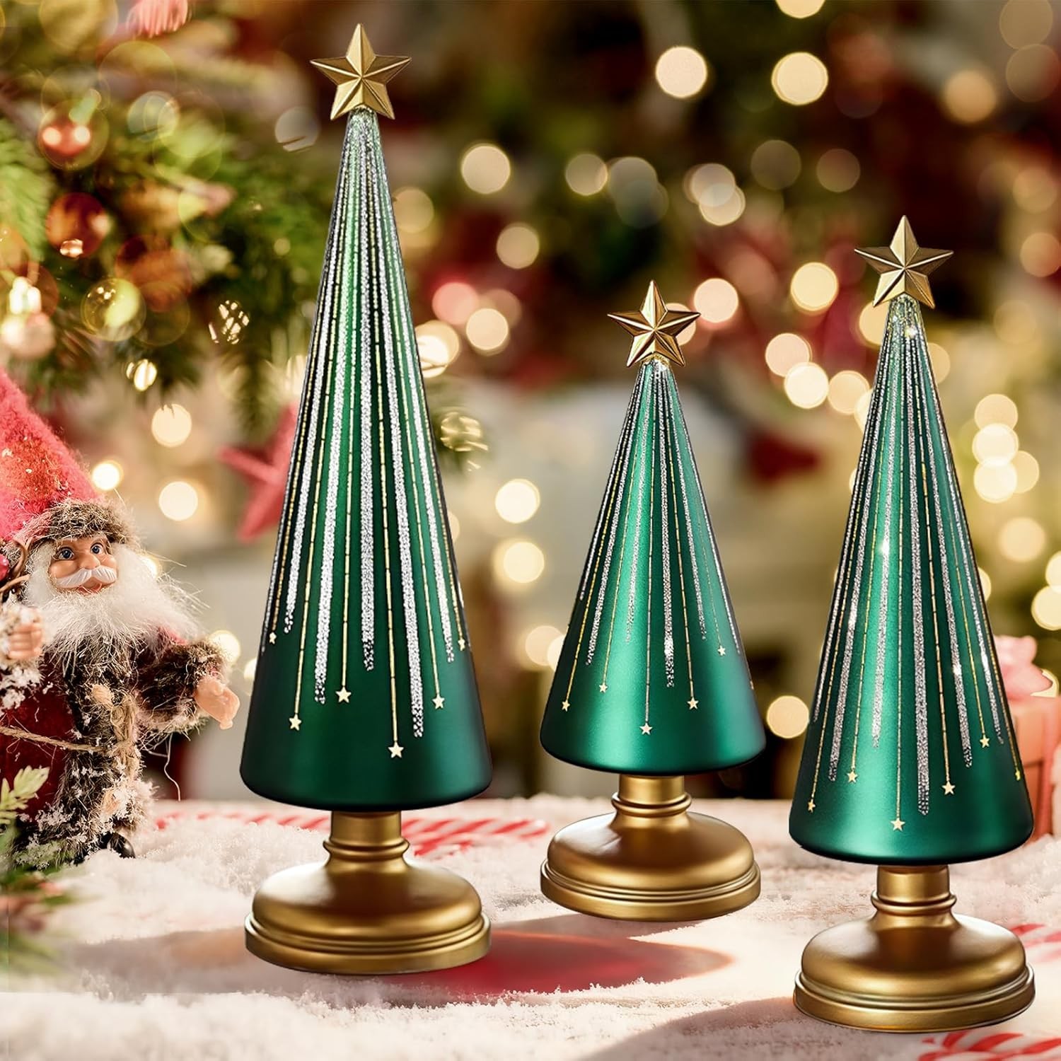 Table Christmas Tree - Small Christmas Trees, 3 Pieces Tree Ornament, Portable Resin Star Greenery Figurine for Indoor Winter Party Table Room Decorations