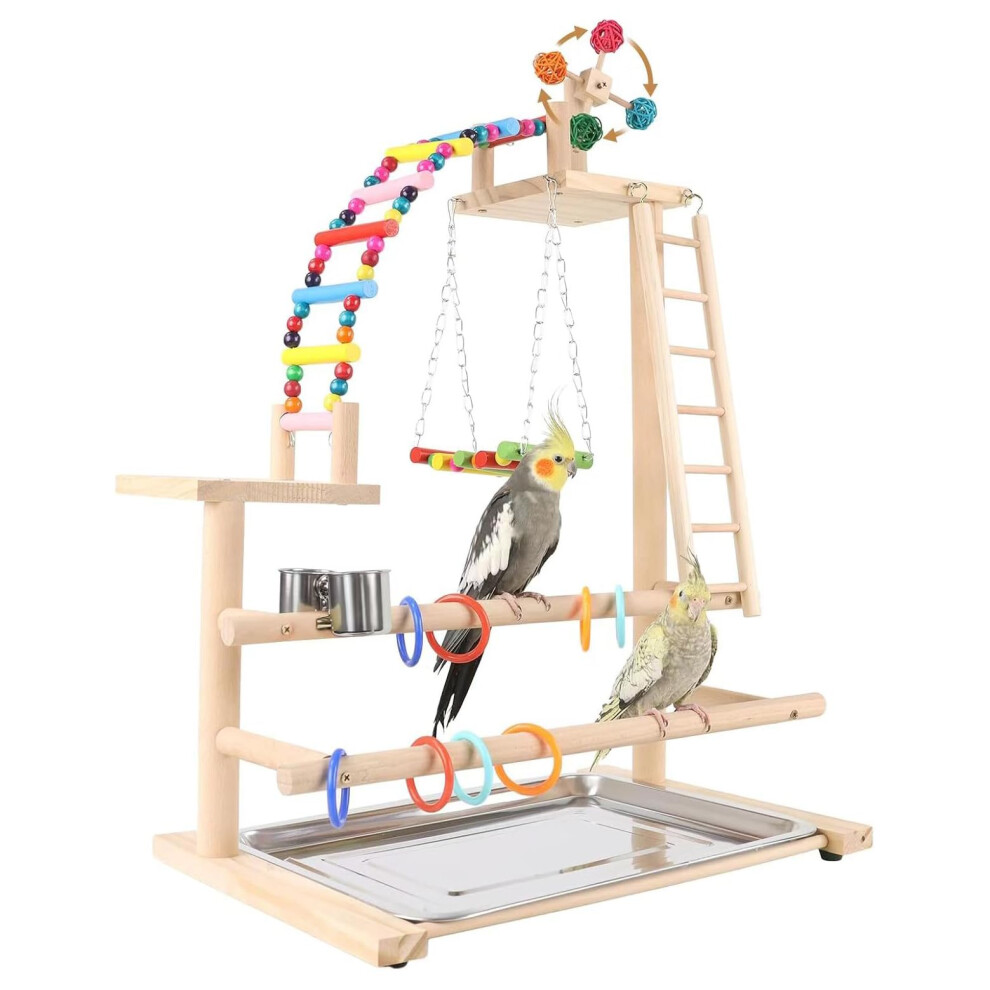 AMZTEMU Bird Play Stand, Playground, Perches, Climbing Frame, Wooden Parrot Stand for Small Middle Parakeets Cockatiels Finches Budgie Lovebirds (46 *
