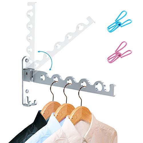 LIVEHITOP Wall Mounted Clothes Hanger, Folding Coat Rack Small Wall Airer Rotat