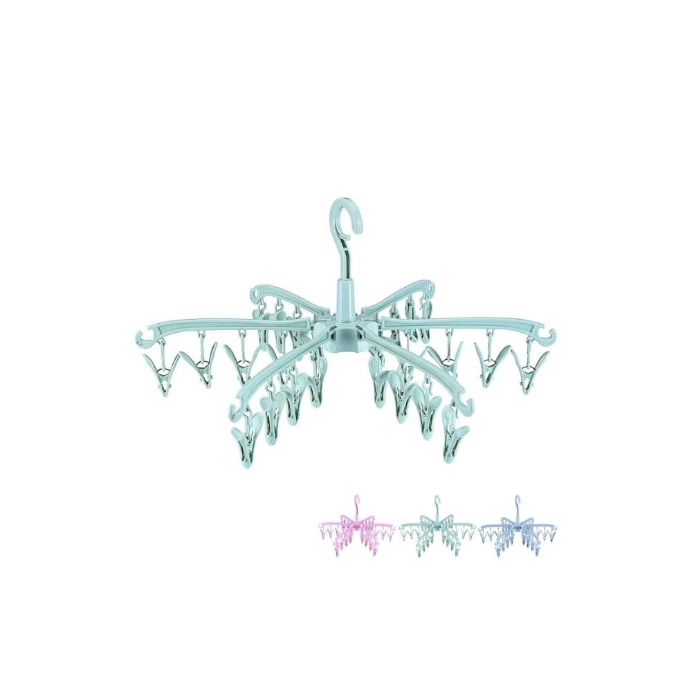 Laundry Drying Hanger with 50 Clips Stainless Steel, 360 Degree Rotation Folding Rack for Small Clothes, Swivel Hook Windproof Clothes Airer for Socks