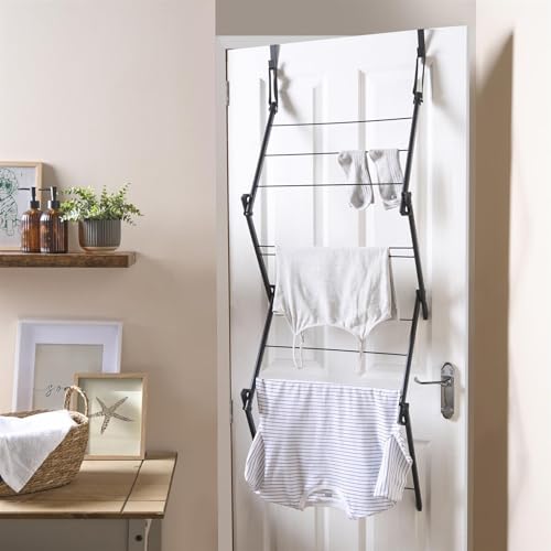 OHS Over The Door Hanging Clothes Airer, Space-Saving Concertina Foldable Clothes Drying Rack with Multiple Bars Small Apartment Essential Landry Over Door Drying Rack, Black