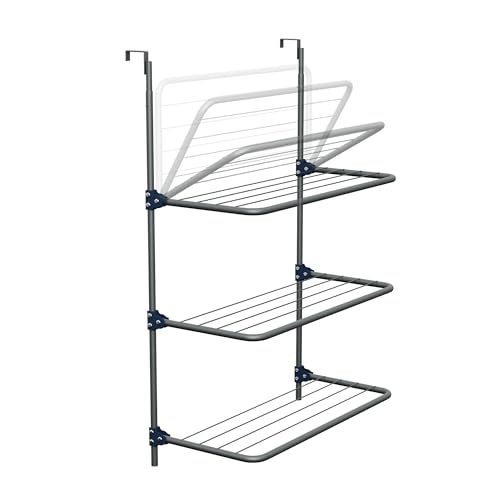 Knight 3-Tier Over The Door Clothes Airer | Foldable Clothes Rail with Corner Spaces for Hangers | Sturdy Hanging Washing Laundry Airer | Indoor Clothes Drying Rack for Small Spaces (Grey)
