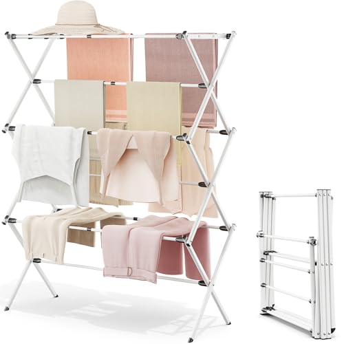 Haden 3 Tier Foldable Clothes Airer - Lightweight And Sturdy Drying Rack, Indoor And Outdoor Use, Compact, Durable, And Easy Storage For Small Spaces,