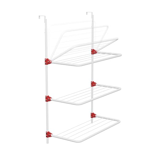 Knight 3-Tier Over The Door Clothes Airer | Foldable Clothes Rail with Corner Spaces for Hangers | Sturdy Hanging Washing Laundry Airer | Indoor Clothes Drying Rack for Small Spaces (White)