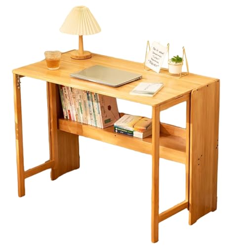 HYHTMER Collapsible Bamboo Desk for Small Spaces, Foldable Computer Desk with Shelves, Rustic Expandable Table, Ideal Home Office Fold Up Table (Natural, 40 21 30 in)
