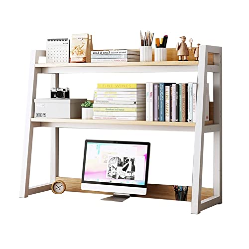 PNAJFUEL Desktop Bookcase,2 Tier Small Bookcase for Computer Desk Desktop Bookshelf Organizer Multi Functfree Standing Bookshelf/White/55X32X90Cm