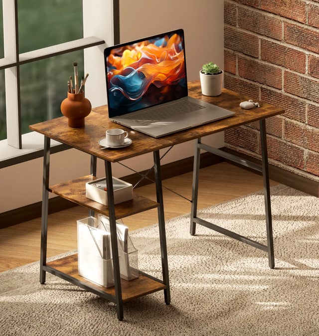 CubiCubi Small Computer Desk 100 x 50 cm Home Office Multipurpose Writing Desk with Extra Storage Rack and Moveable Shelf,Rustic Brown