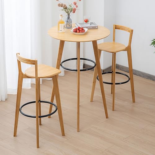 3 Piece Pub Dining Set, Modern Round Bar Table and 2 Bar Stools with Backrest, Kitchen Counter Height Wood Top Bistro, Easy Assemble for Breakfast Nook, Living Room, Small Space Restaurant