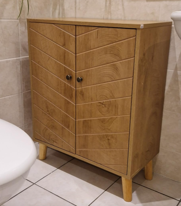 VonHaus Bathroom Storage Cabinet – Oak Wood Effect Bathroom Floor Cabinet with Handleless Design - Small Floor Standing Cupboard - Storage Unit for Kitchen & Hallway - Chester