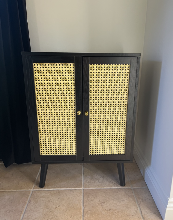 Small Side Cabinet Rattan Cane Style Storage Door Cupboard Unit Rustic Sideboard