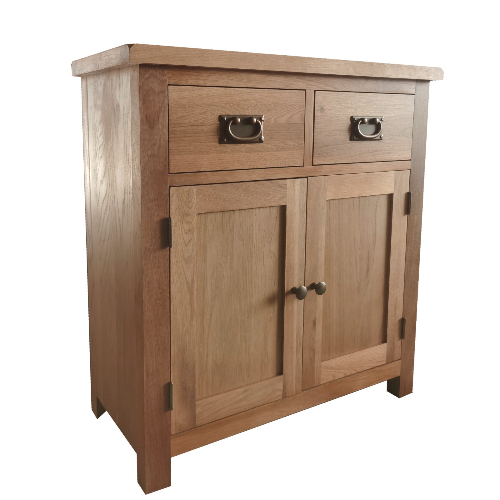 Oakcroft Rustic Oak Mini Sideboard - Small Cupboard Storage Unit Fully Assembled