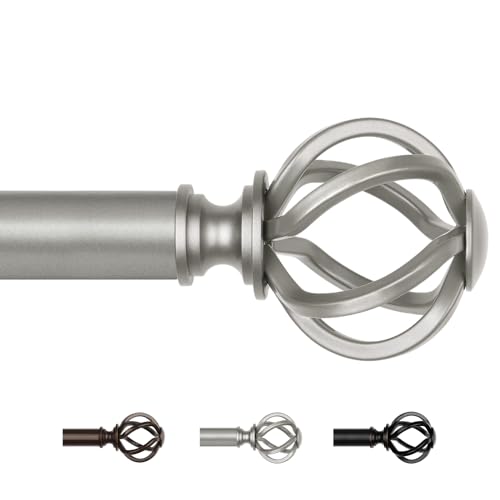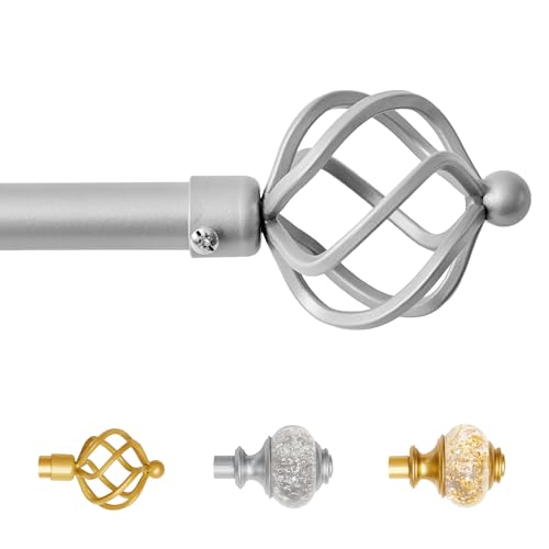 USFOOK Antique Silver Curtain Pole 80 to 148 cm, 22 mm Extendable Curtain Poles for Eyelet Curtains, Small Metal Curtain Rod for Door with Twisted Cage Finials