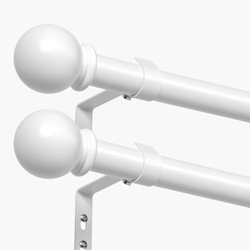 PeSenp 2 Pack Curtain Poles 87-243cm, 16mm Diameter Curtain Rod with Round Finials, Small Curtain Poles for Eyelet Curtains, White Metal Curtain Pole Includes Brackets & Fittings Set