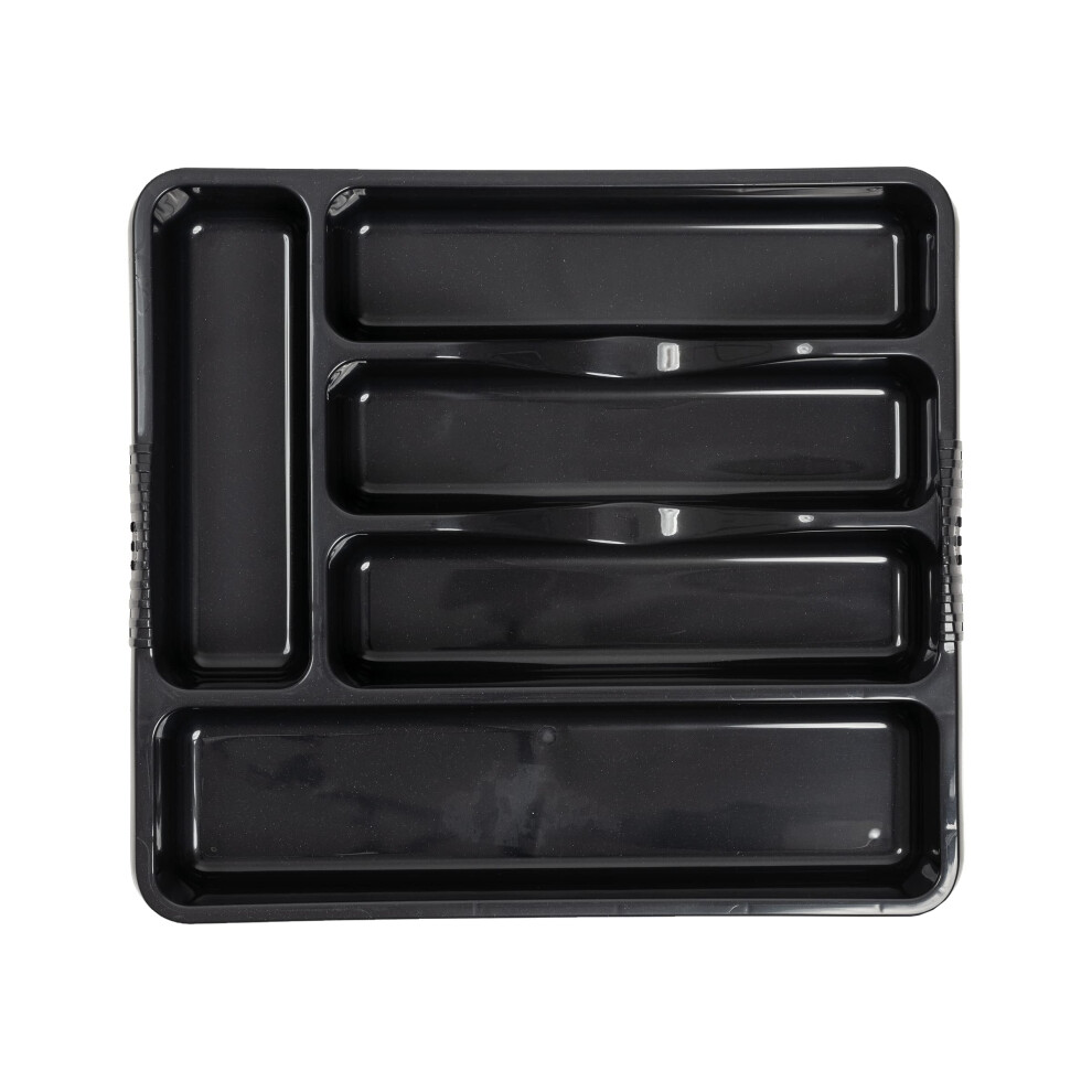 Plastic Small Cutlery Tray Kitchen Drawer Insert 5 Comp Organiser - Dark Grey