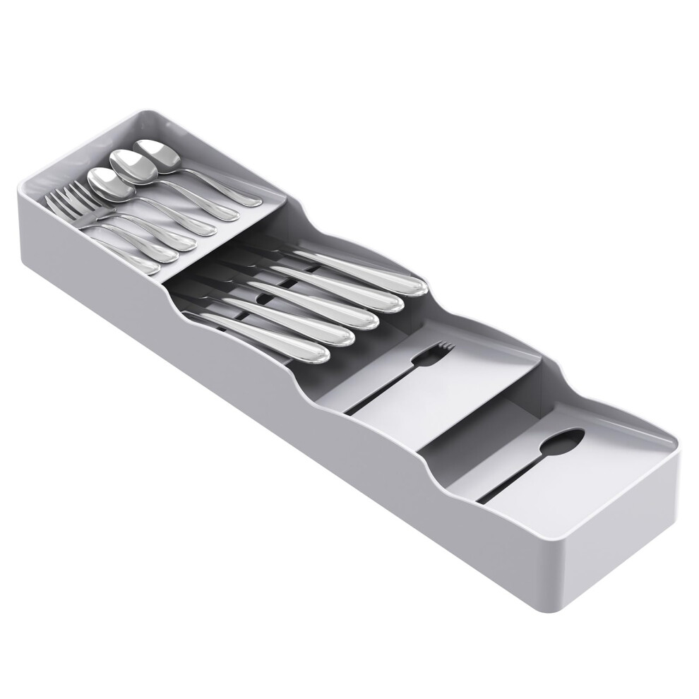 Compact Cutlery Organizer Kitchen Drawer Tray, Small, Gray