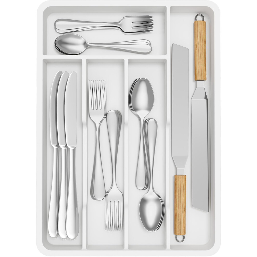 Classic Small Silverware Tray White 5-Compartments Icons help sort Flatware, Utensils and Cutlery Soft-grip Lining